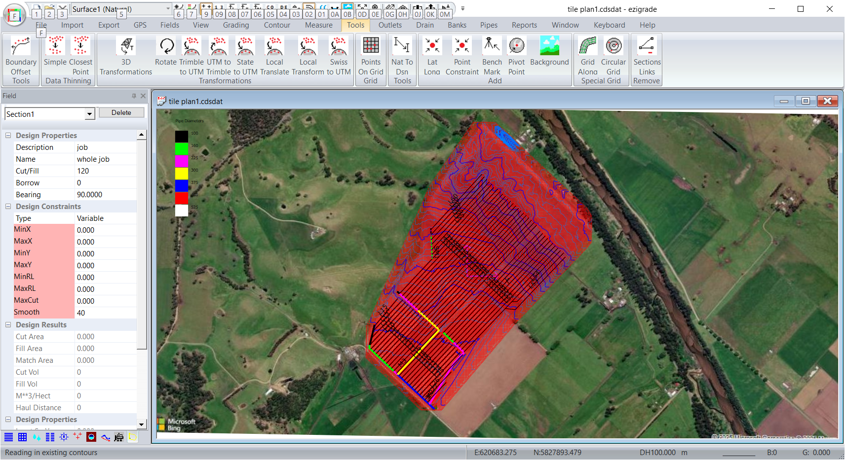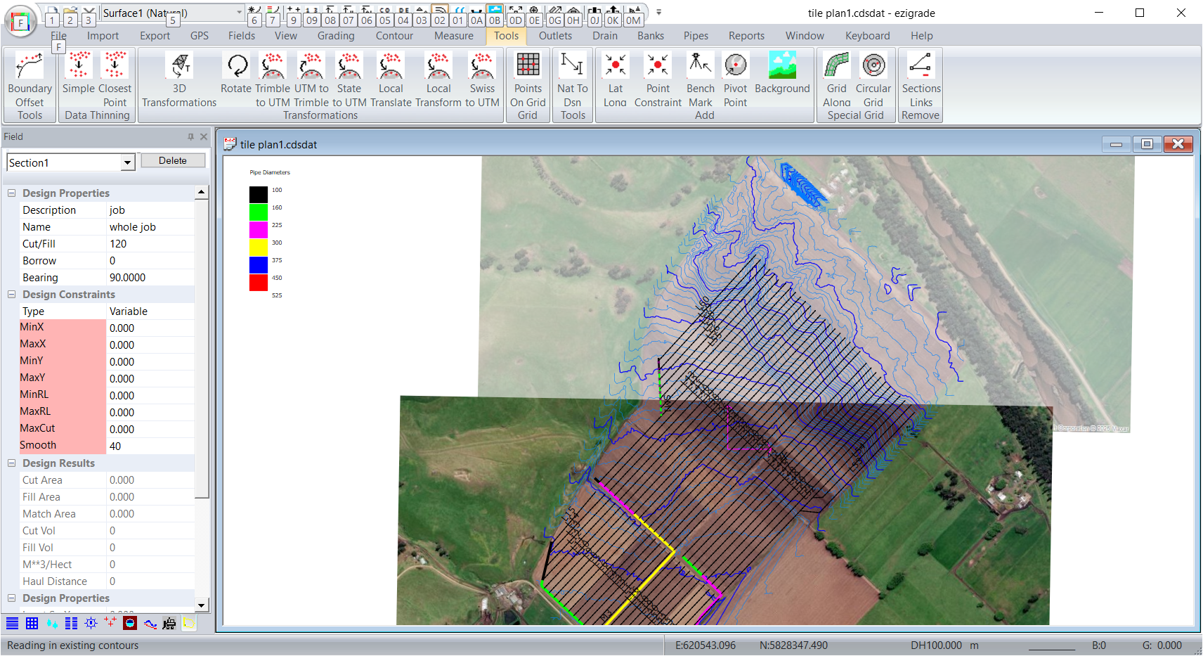 Ezigrade and CDS can display a background bitmap. However your job data needs to be georeferenced. ie It needs to be in a coordinate system that we recognize. At present this incudes WGS84 (ie like google Earth) or State Plane coordinates. If you are using local coordinates then we have no way of finding out where the job exists in lat/longs.