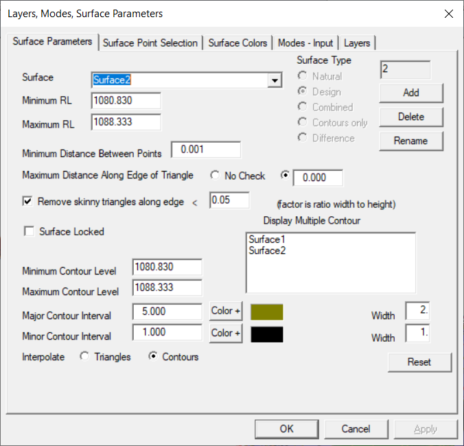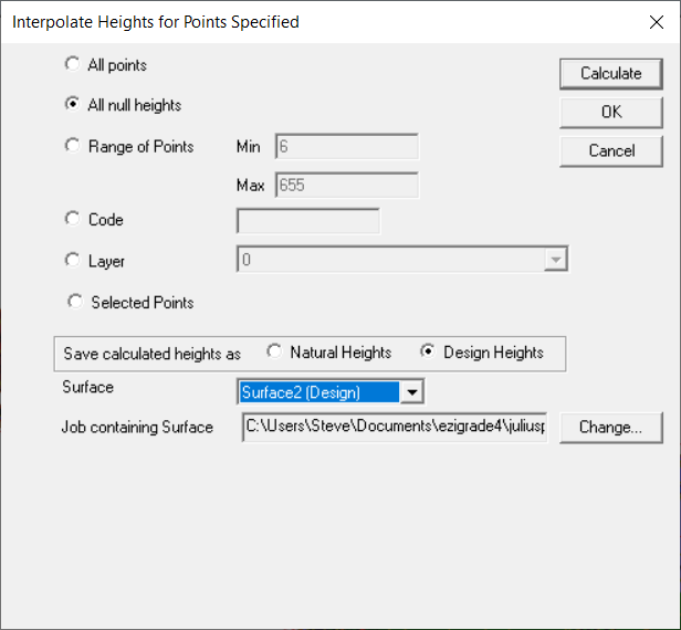 However we often have a job with a natural surface using points only with a natural surface height set; and a design surface where only the design heights are set. In this case we have 3 options.