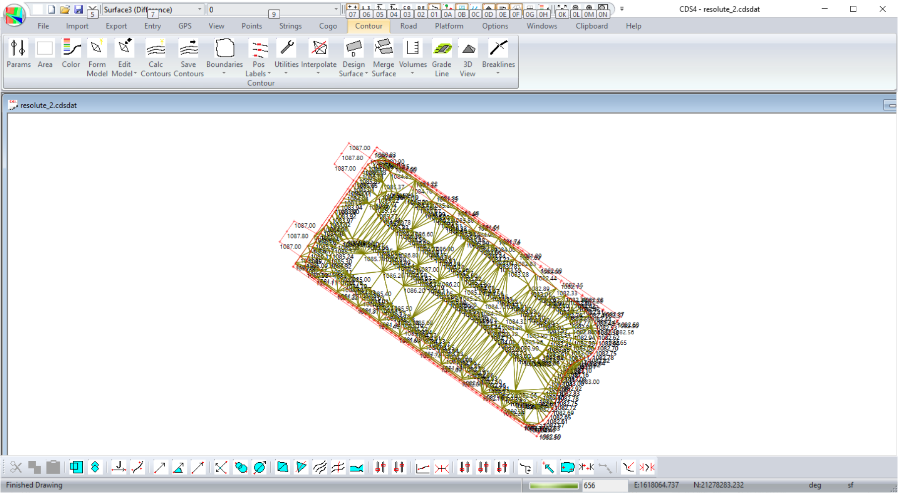 Again for Contour -> Params create a new difference surface. In this case we are using all the points in both the natural and the design triangles. We will need to do a Contour -> Form Model and we get this:
