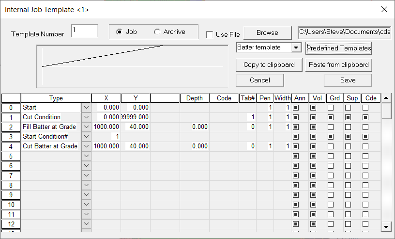 In this case if the cut batter is deeper than 5 meters we want to put in a 3 meter wide berm. So we wish to modify the cut batter. We made the following changes: