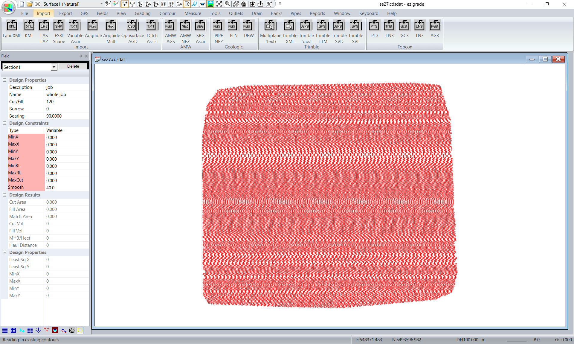 We need to triangulate the job so click on Contour -> Form Model. I also created contours from Contour -> Form Contours.