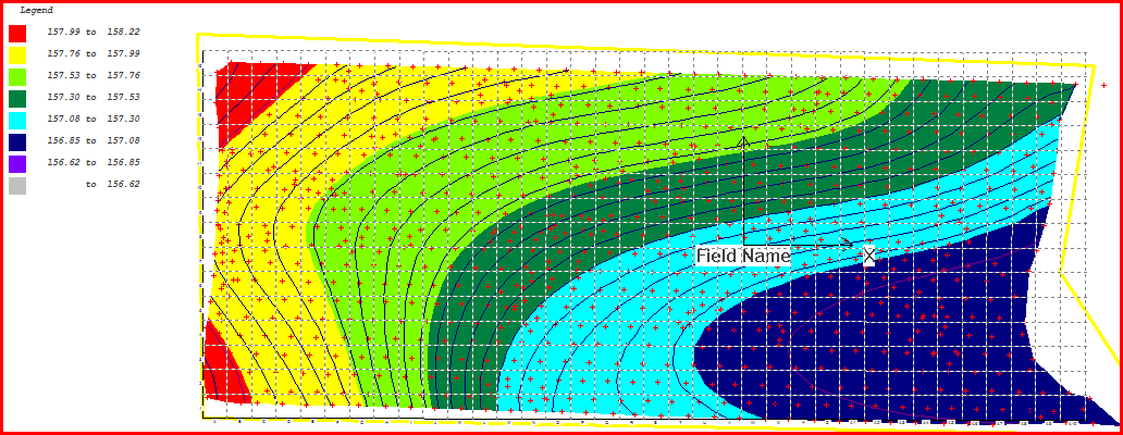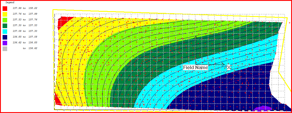 After the field is graded so that either a plane or constrained grades are produced you have the option of smoothing the surface. This is a bit like running a fine grader over the surface. Smoothing the surface is a good idea as it reduces change of grades and leads to better water run-off.