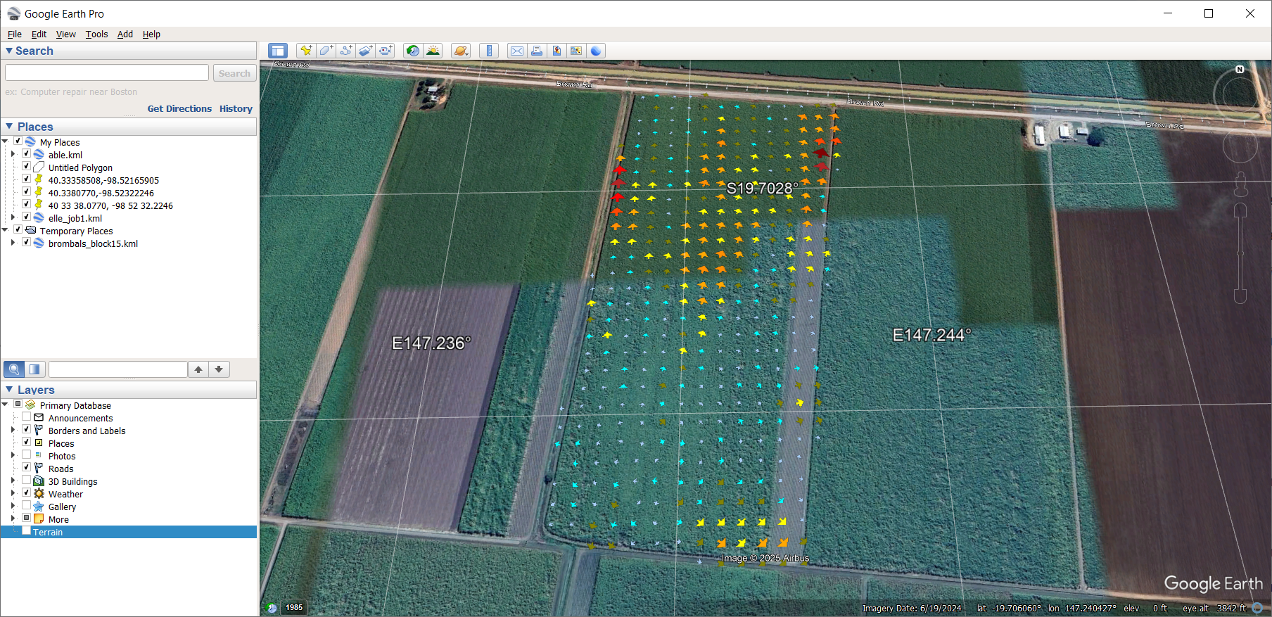 The Haulage arrows give a visual representation of the best way to move dirt around within the job. At present it will not account for import/export of dirt from the field. The arrows are graded from most dirt to least dirt. The idea is to give feedback on how best to move dirt around to minimise the distance dirt needs to be moved.