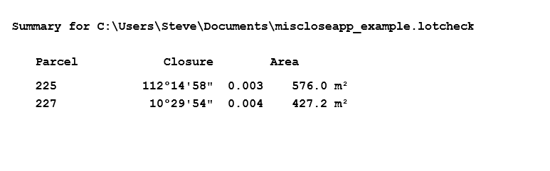 Now click on the OK button. MicloseApp creates a new file called miscloseapp_example.lotcheck. This file contains a link to the original DWG file.
