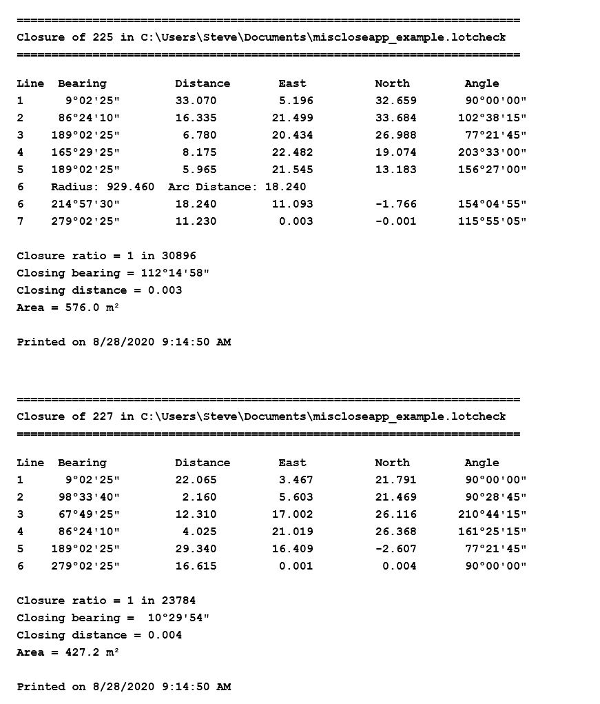 We have been given a DWG and we wish to check that the bearings and distances shown on the drawing close to within tolerance's. We have a file called "miscloseapp_example.dwg".