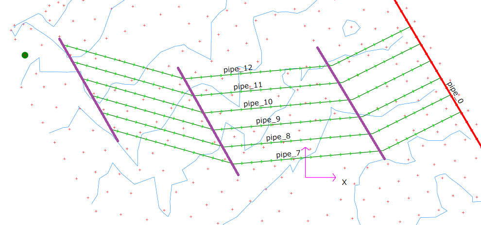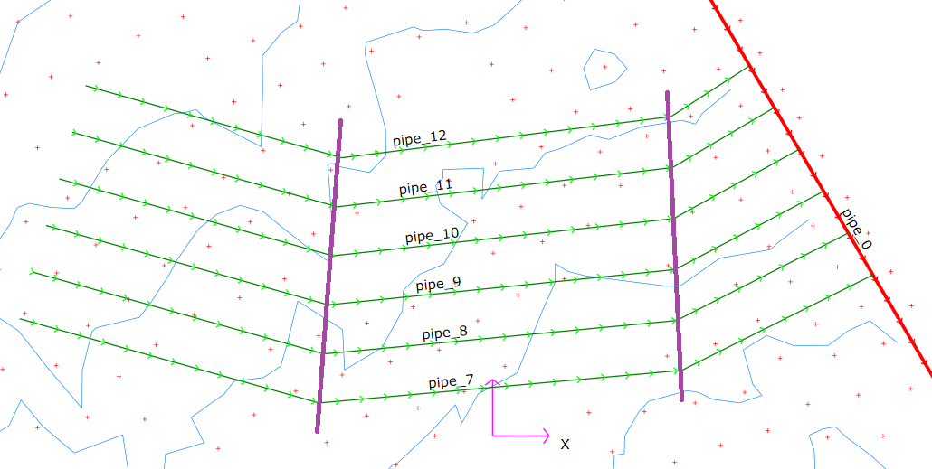 In this option the next line is drawn so that the nodes are fixed relative to the node in the lateral being copied. So the same example with the parallel option leads to this: