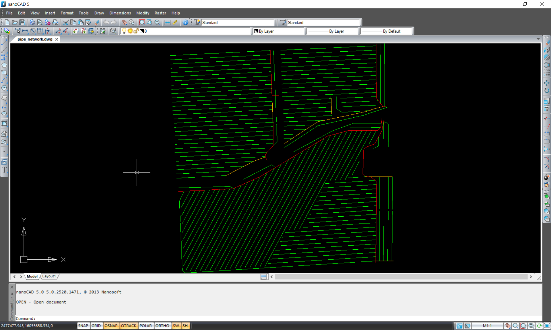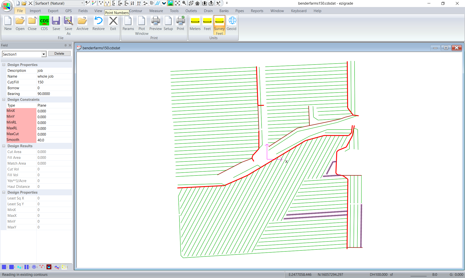We want to export this to an Acad dwg/dxf file. At present Ezigrade has no dwg/dxf export option. However the CDS helper program can export to a dwg. CDS is included when you purchase Ezigrade. Unfortunately CDS doesn't understand pipe networks at present. However we have a work around. In Ezigrade we can create a series of strings representing the pipes. Then in CDS we can export these strings to a dwg.