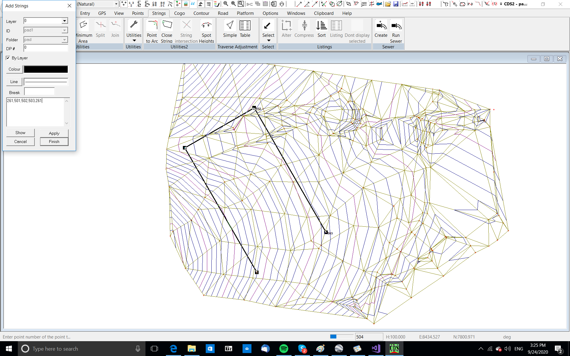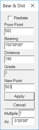 Enter 500 as the point to start from followed by 330 for the bearing and 180 for the distance. Select Apply and you will see point 501 appear.To get the next point, position the cursor in the “bearing” field and press the ‘R’ key to add 90 degrees to the current bearing.