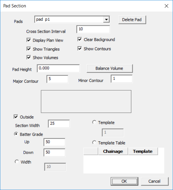 Often we wish to balance the cut and fill. Simply click the "balance volume" button and the appropriate height is calculated. In this case it is 223.370 At present there is no option for compaction / expansion of fill.