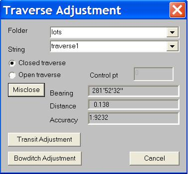 You can also perform an adjustment on a CDS string that is either an open or closed traverse. You also have the option of using the string and having CDS fill in the traverse table for you.