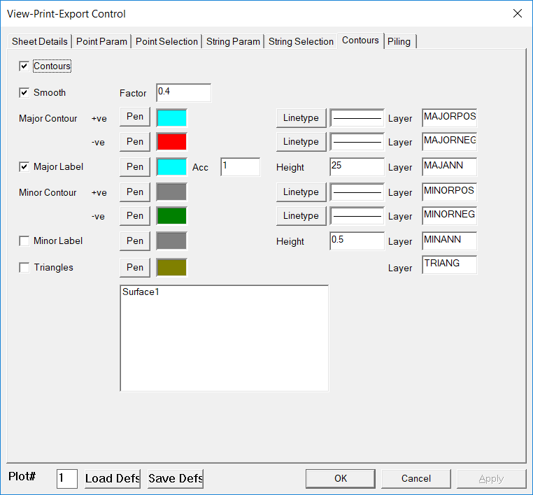 You can choose the colour you require for both major and minor contours by selecting the Pen button and choosing a colour from the palette presented.