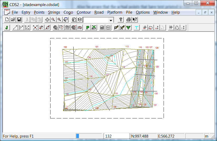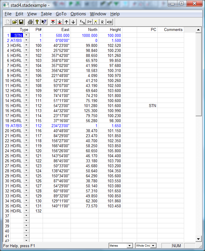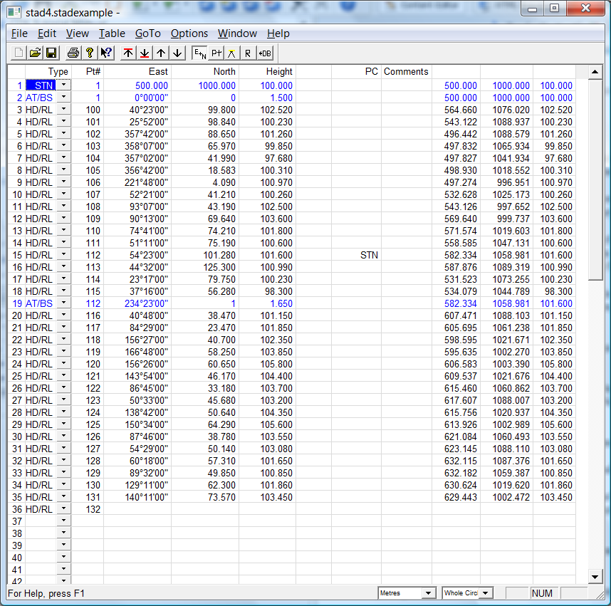 Now before we proceed any further, we need to know if we have entered the data correctly, and one quick guide to this is to inspect the coordinates calculated for the stadia shots to see if they “make sense”.