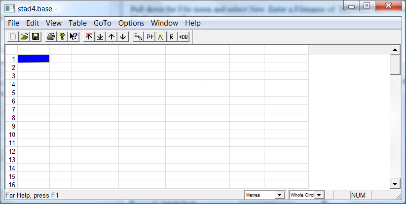 In this data we have generally not recorded codes or descriptions with the points, so press the Enter, or Tab keys to move past these columns and onto the next line.