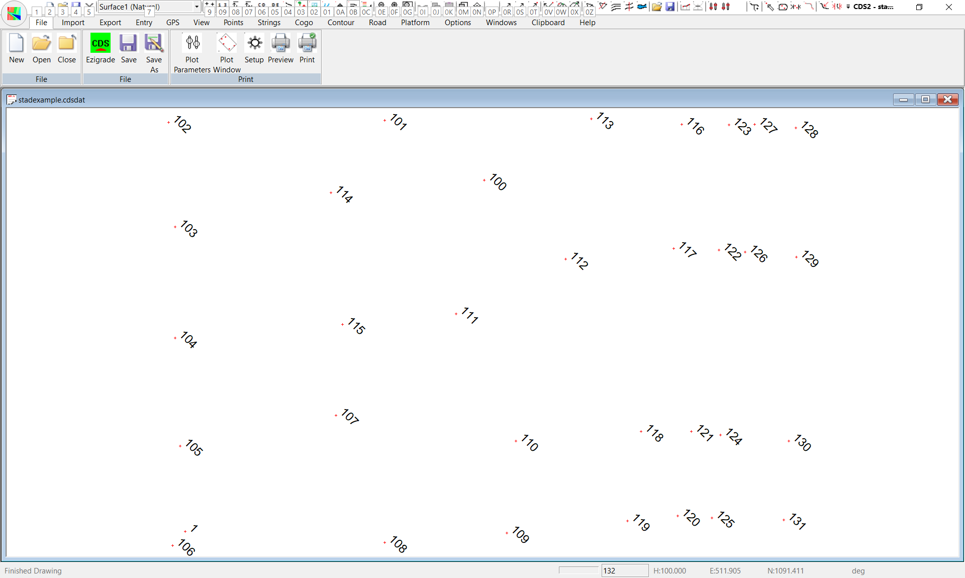Note that the numbering is a little astray at this point as the program wants to continue numbering from point 113, but you had already gone past that point, so enter a correct point number of 116 and continue entering the data until it is finished.