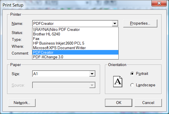 Once you have set the plotter to use some A1 paper in landscape mode you should close the Print Setup option.