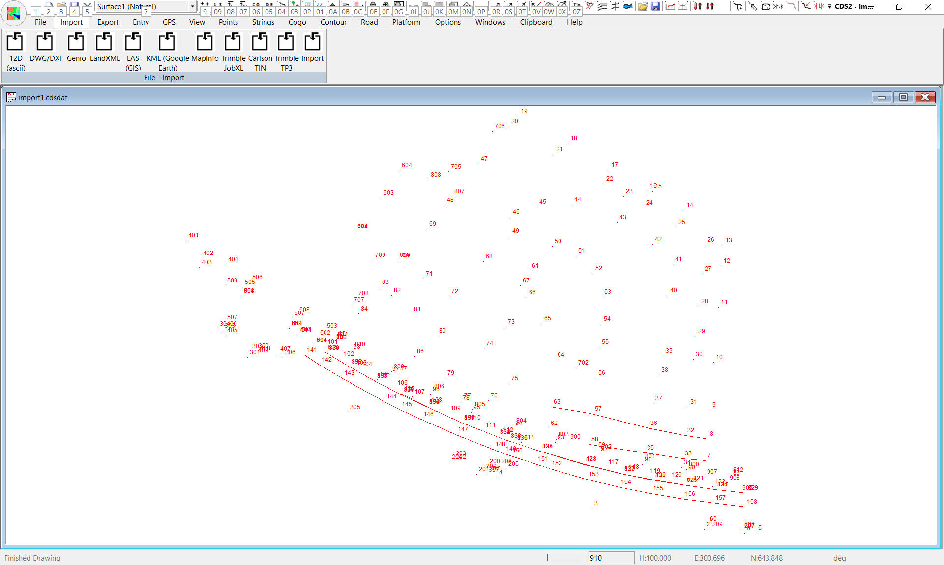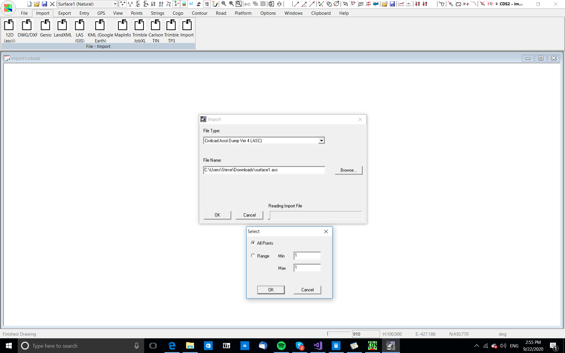 CDS will ask if you wish to import all or a range of the points in the file, and you should make sure All is selected, and then press OK.
