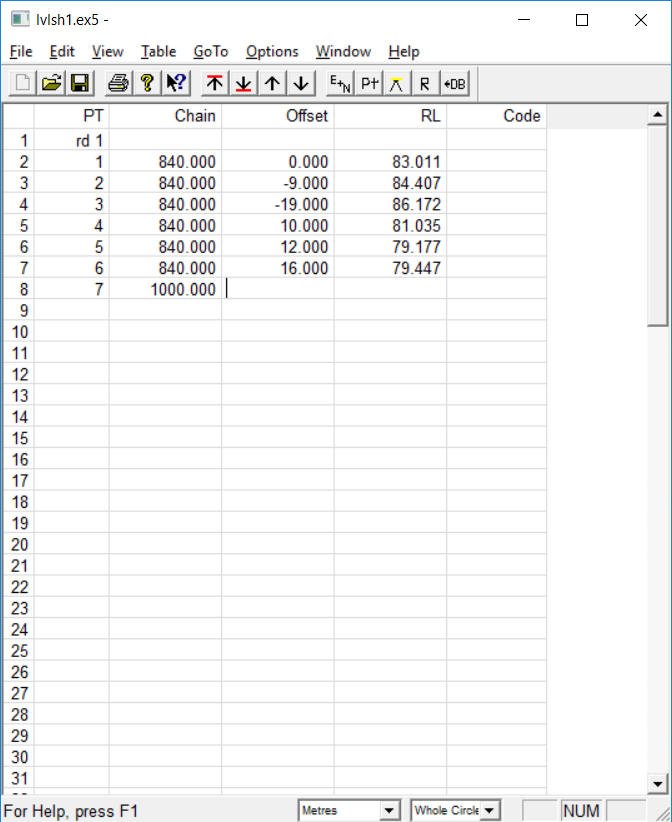 We now wish to close down the entry screen, so use either File, Close, or the close “X” at the top of the window, and answer Yes when asked if you wish to save changes to the level sheet. If you now do a Zoom Extents the points are displayed upon the screen. The points don't have an easting or northing. CDS calculates default eastings and northings from the chainage and offset.assumes the points are running in eaterly direction.