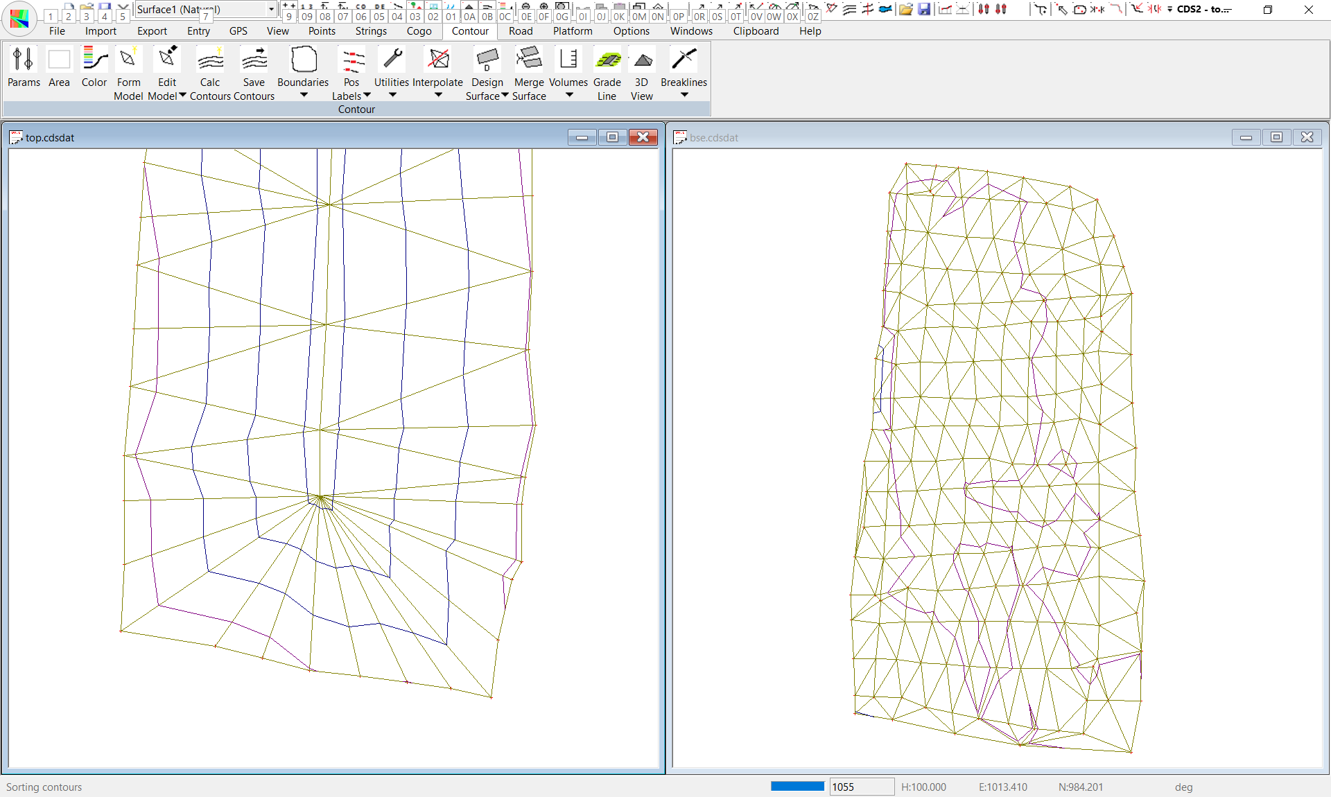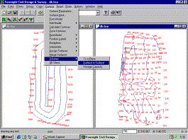 Press F8 to turn the triangles off, and the screen will now appear as seen below.At this stage, both surfaces appear to have been successfully modelled, so it is time to calculate the volumes. Pull down the Contour Menu and select the Volume option.