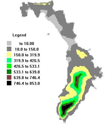 First thing for this job is to represent the ocean. We have decided to display as water everything below a value of 0.1 meters. To do this select the water icon on the left menu and put in a value of 0.1 Hit the "update map" button to update the display. Our small height map is now displayed as. Without going any further we are now in a position to create our first render.