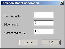 The first entry refers to an "Oversize factor". This adds in data to the edge of the job ; so that our model does not appear to be floating in space.The "Edge Height" fills in this edge data with the height specified. In this case our Island is lapped via the ocean so a value of 0.0 is ideal.