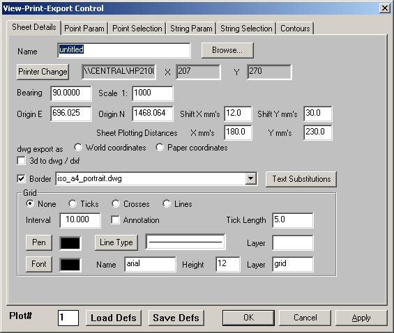Please take note of the following. In this example we wish to create a plot at a scale of 1:1000. The origin of the paper can be defined graphically by moving the sheet around the page. The option is there for also changing these values by typing in the needed values. CDS has an option for also creating a Border as we go. This border is defined as a dwg file. If you don't have Autocad or equivalent there are a small number of predefined dwg border files supplied that you may use as is. To use a border tick the "Border" tick box and select a border dwg file from the drop down combo box.
