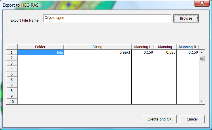 (6)Now click on the "File" - "Export to HEC-RAS". Fill in the dialog. Here is a sample you can use for this job.