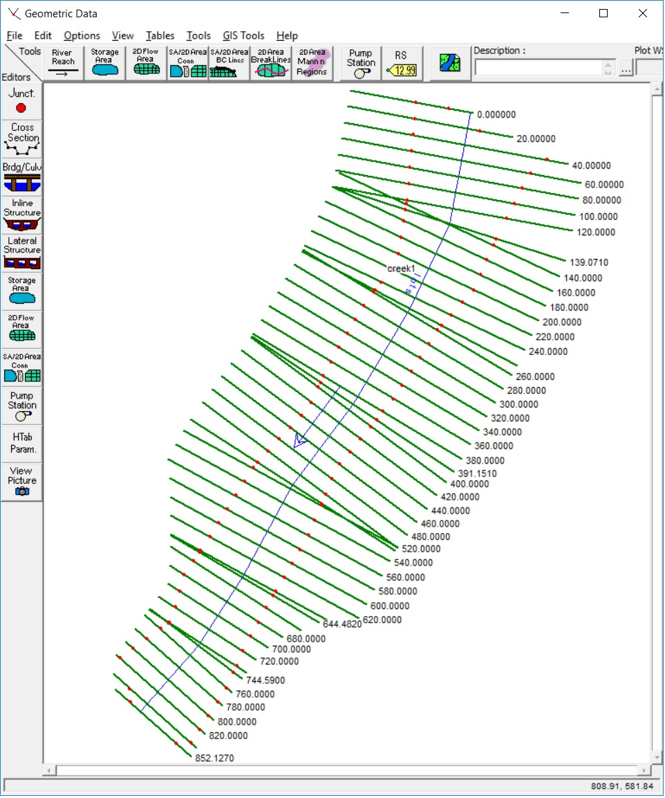 (12) With "File" - "Import Geometry Data" and click on "GIS Format". You will see that some of the sections intersect each other. At present we suggest that you remove the conflicting sections within HEC-RAS. We intend to test for this within CDS but this is still a work in progress.