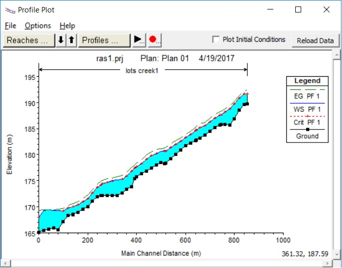 (16) Click on "View" - "Water Surface Profile" and you have the following profile along stream centre line.