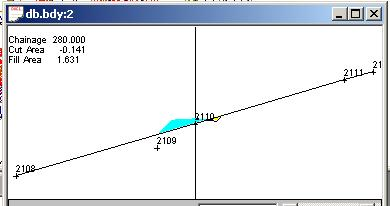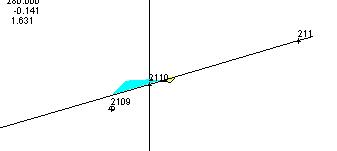 In this case we see that point number 2109 is not included in the section; but is shown as a fixed point. In this case it would be nice to display a circle at the appropriate size to indicate that it is indeed a pipe. There is indeed an option to achieve this and it is done through the feature code routines.
