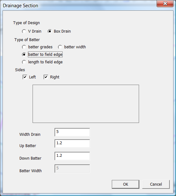 We are going to use a drain width of 5 meters and batter slopes of 1.2% and see how we go.