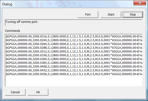 You can know check whether you can receive data. Click OK and then press the "Start" button. If the stars are aligned you should get the following output or similar.