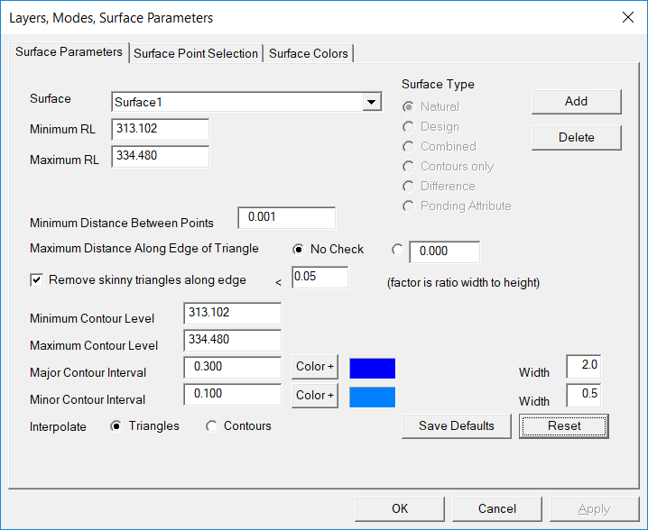 Ponding - This allows you to create a surface that shows ponding depths of the natural surface. Extra attributes are added into the database to create this surface.