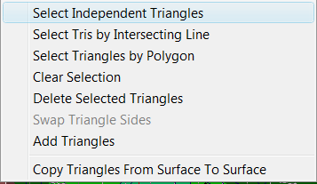You would normally only need to use these routines in grading jobs to remove any long skinny triangles that you often get around the edge of the job. You can select triangles individually, by intersecting line or by a bounded polygon. Once triangles are selected hit the delete key to remove them. You also have the option of manually entering new triangles here as well.