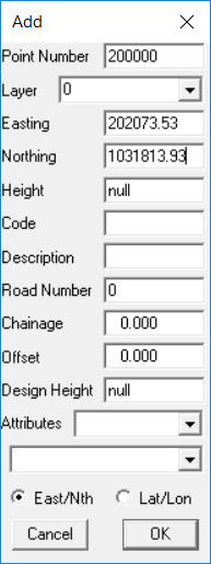 We can now do the conversion using CDS3. In CDS we need the original 2 points and 2 new points in the new coordinate system. OPen the job in CDS3 and click on Points->Add. We have added in a new point with WGS84 coordinates. Repeat for the second point.