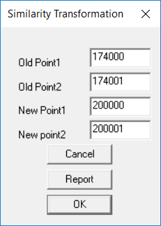 Now in CDS. We need to select the points that we want to transform. Click on Points -> Select -> Select by Polygon. Draw polygon around all the original data and hit enter to finish the selection. Points should be selected. Now click on Points -> Transform. Fill in the two old points and the new equivalent points.