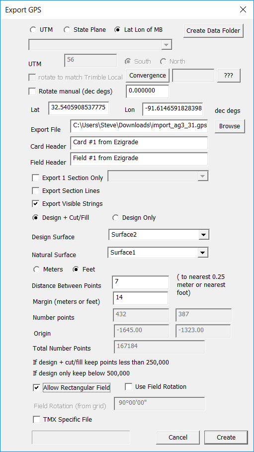 It contains 6 sections. In this example the bench mark points also have latitude and longitude's associated with them. This makes it possible to georeference the job and Ezigrade can also extract this internal data.
