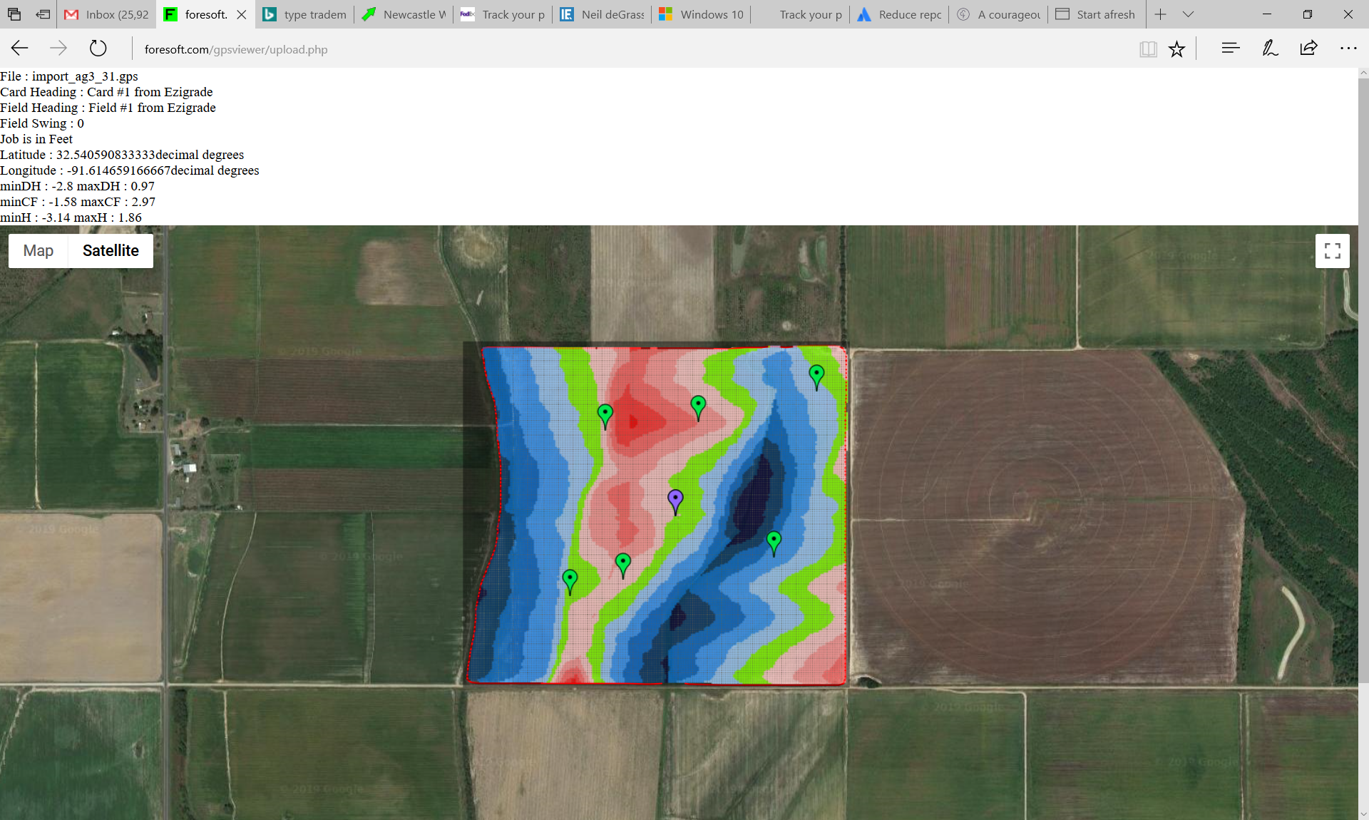 In our job we only have two points. If you have two or more points then use the two points that are furthest apart. Make a note of the two point numbers and the associated latitude and longitude. At present Ezigrade is lacking a calculator to show the conversion from latitude / longitude to WGS84. (It is added to the todo list)