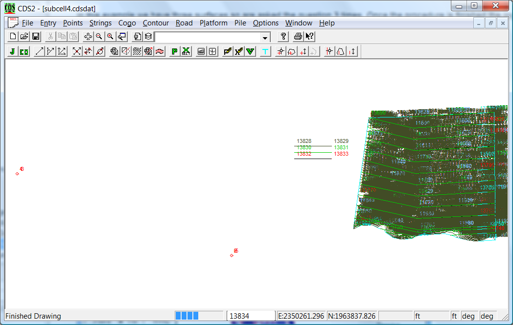 We have been given a DWG that contains a natural surface and two design surfaces. The data is in state plane coordinates and is in zone 2302 Mississippi West.