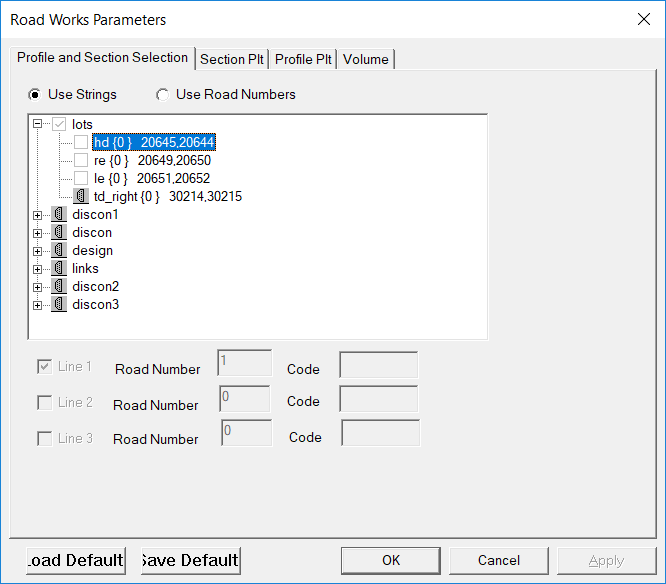 We are now in a position to create our section for the whole structure. Click on Road -> design criteria -> profile parameters. Change the selection to the td string: