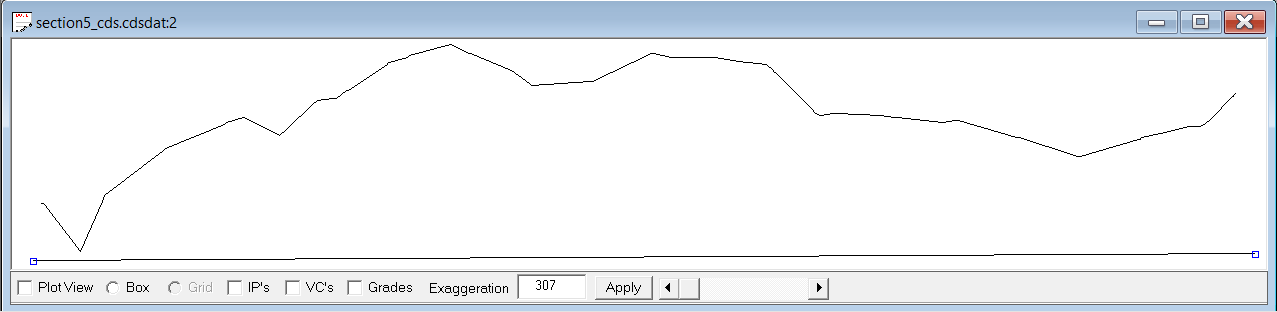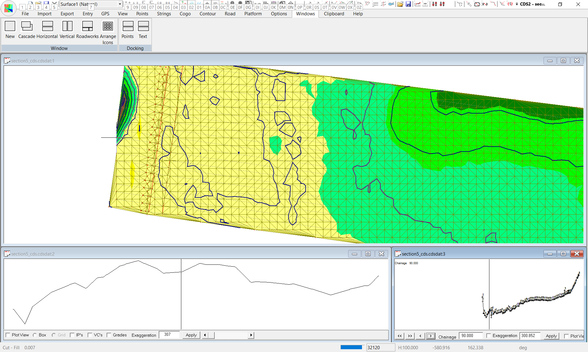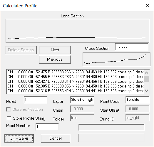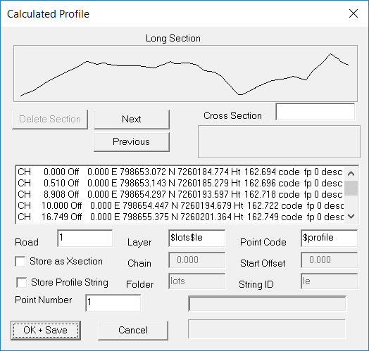 This has created sections. Click on Road -> Display -> Display/Print -> Display Profile and Display Section. Now click on Windows -> Road Works and we have the following.