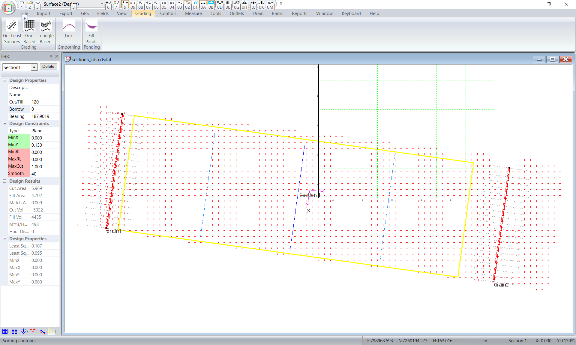 If you look at the screen shot above we have a number of strings. We are going to use the right edge of the table drain, the left edge of the section, the right edge of the section and the left edge of the head ditch.