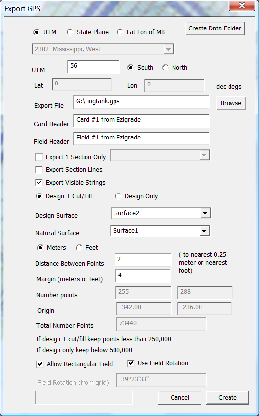We can now send our design to our respective controller. In this case we will go to Trimble Field Level 2. Fill in the "File - Export Trimble Machine" as below to create a file suitable for the field level 2 controller.