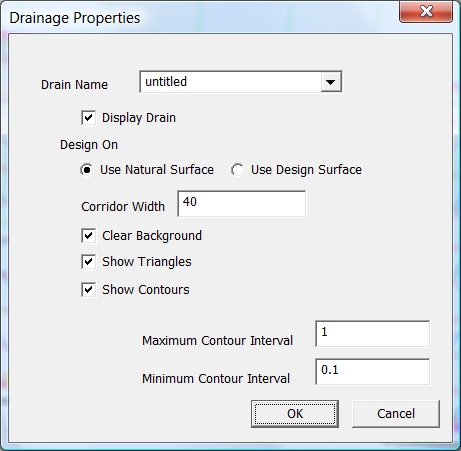 Once you have inserted the drain. This drain is now the current active drain. Click on this menu item and we have the following Dialog displayed.