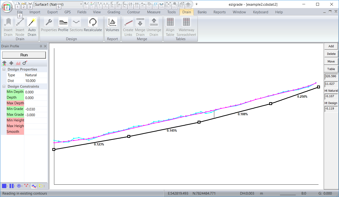 This allows you to design the new center-line profile for your drain. Clicking on this option brings up a new view which looks like the following: