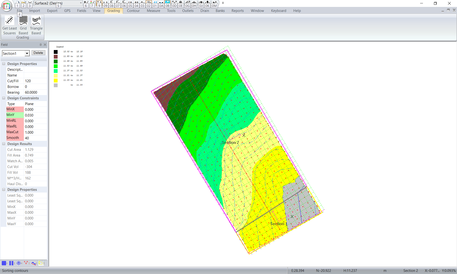Unfortunately this method won't give you any cut/fill values as the natural and finished surface are the same. Also there appears to be no way to import string lines etc. Both of these help the operator when trying to grade the design.