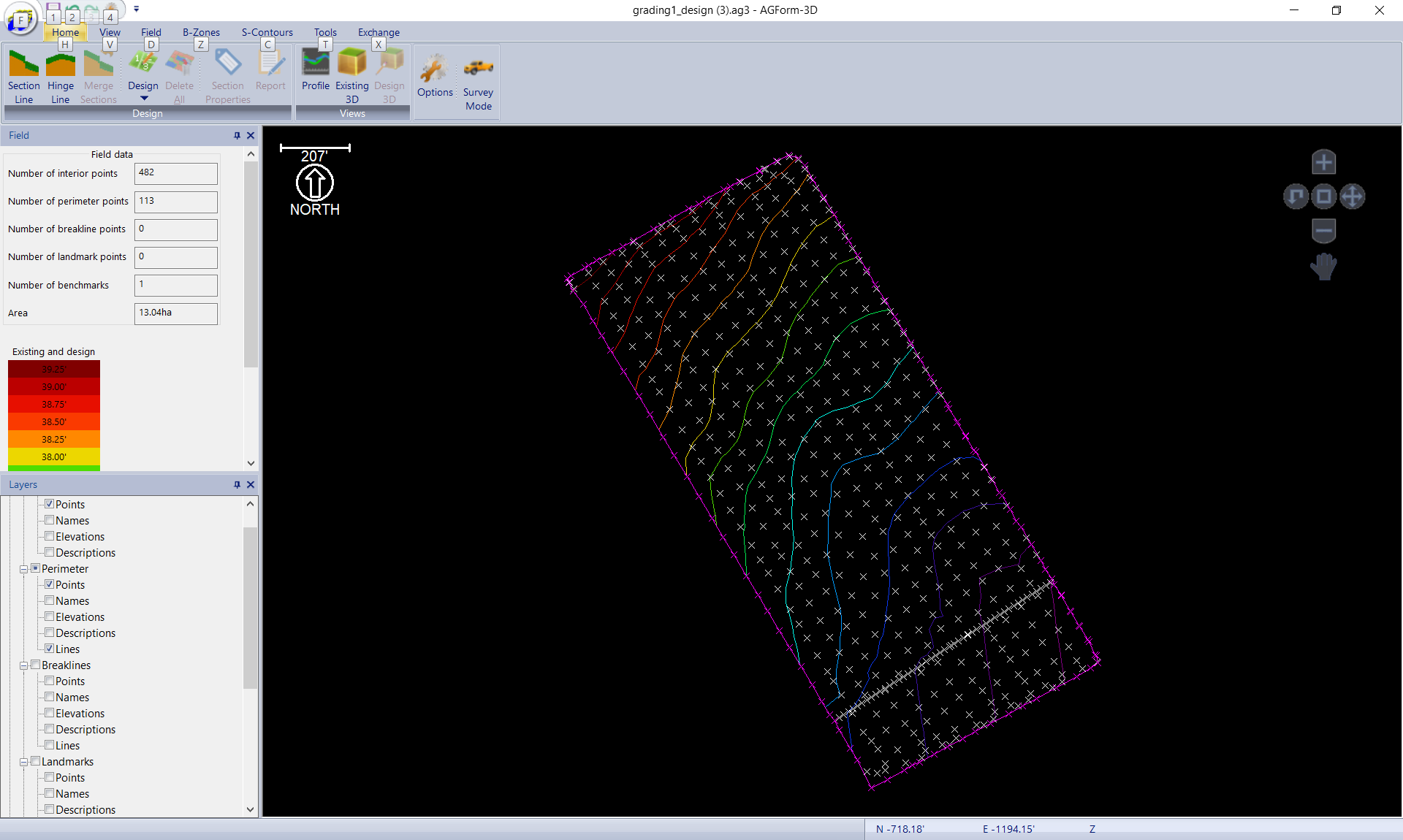 At present there are limited options of getting external designs into Agform-3D. Topcon has two options. You can import raw points where the text file contains finished design heights rather than natural surface data. Alternatively you can import a Topcon TN3 file which represents the new design surface. Both methods then require you within Agform-3D to create a design surface that matches the surface imported. You can use both methods with Ezigrade. We will describe in greater detail what you need to do to implement the second method.