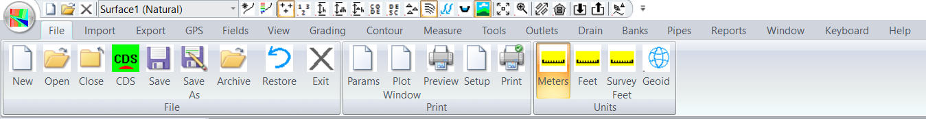 The main menu items are in the top row. ie File, Import, Export etc and the corresponding sub-menu items are displayed in the ribbon below. Each of these menu items are discussed in the pages below.