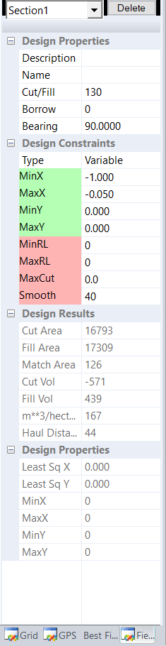 You fill in the appropriate "Design Properties" and "Design Constraints" for each section. The grading routines then use these values to create your optimised grading design.
