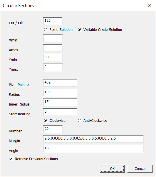 This function automates the creation of sections around a pivot point. You could use this when you are using pivot irrigation and you wish to grade the surface so that water can flow around the pivot point. If you have pivot irrigation but don't want water to flow around the pivot then don't use this option.
