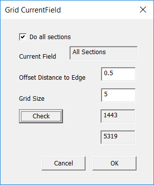 Click on "Do All Sections" as we are doing the whole job. Set an appropriate grid size. After selecting a value then click on "Check". This gives us the original job size and the final job size. In this case a 5m job leads to 5000 points. This is a very manageable job. If we had 50000 for example I would suggest a larger grid size. It comes back to how powerful your computer is and how patient you are when the software is running. Click OK and the job is gridded.